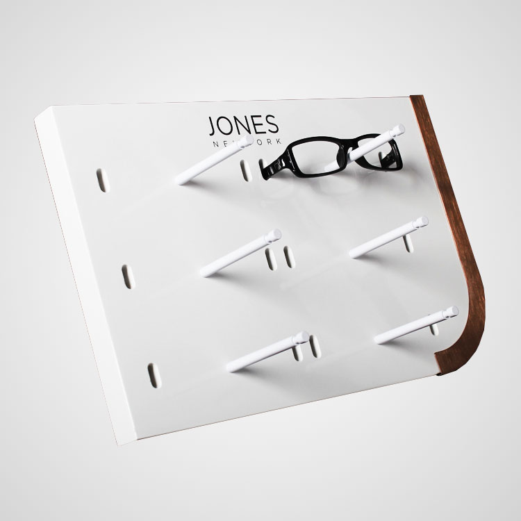 規(guī)格:W410*D165*H238mm或定制 價(jià)格:請(qǐng)咨詢客服 這是一款我司設(shè)計(jì)的臺(tái)面款木質(zhì)眼鏡展示架,定制生產(chǎn),工廠批發(fā)價(jià),可以用于賣場(chǎng)/眼鏡店/品牌的首飾陳列。