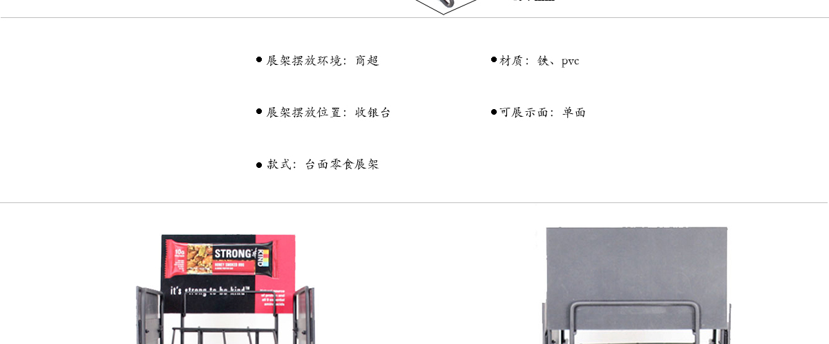 這是一款我司設(shè)計(jì)的臺(tái)面鐵線食品展示架,定制生產(chǎn),工廠批發(fā)價(jià),可以用于賣場/便利店的零食小吃陳列,同時(shí)也是多功能展示架,可用于其他產(chǎn)品展示。">