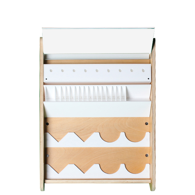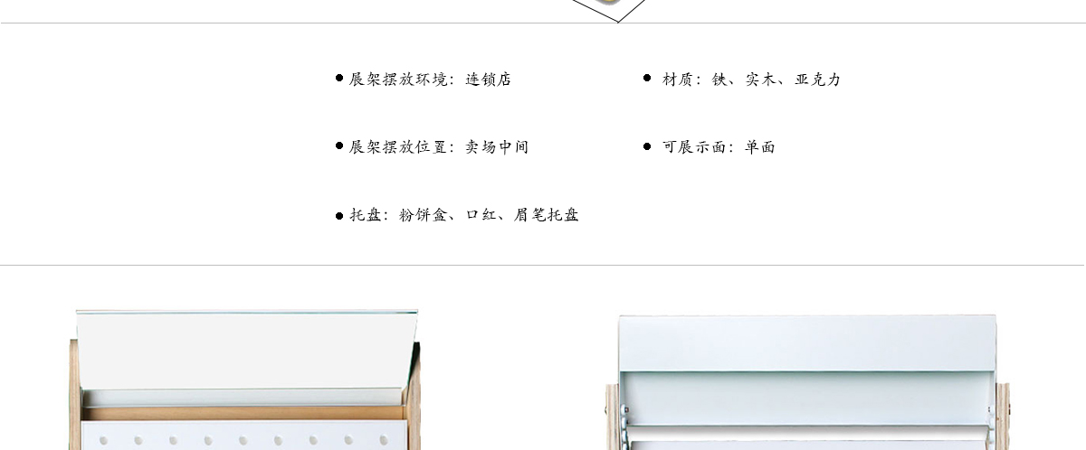 化妝品展示架定制加工,眼線、眉筆、指甲油組合陳列展示架,合成木加白色亞克力材質(zhì),適用于化妝品專賣店!">