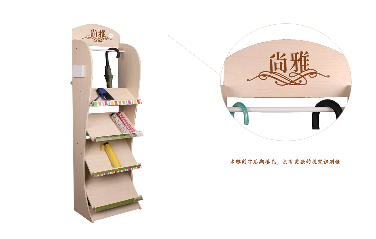 這是一款我司設計的落地款木質(zhì)飾品展示架,定制生產(chǎn),工廠批發(fā)價,可以用于賣場/品牌店/購物中心的雨傘陳列,同時也是多功能展示架,可用于其他產(chǎn)品展示。">